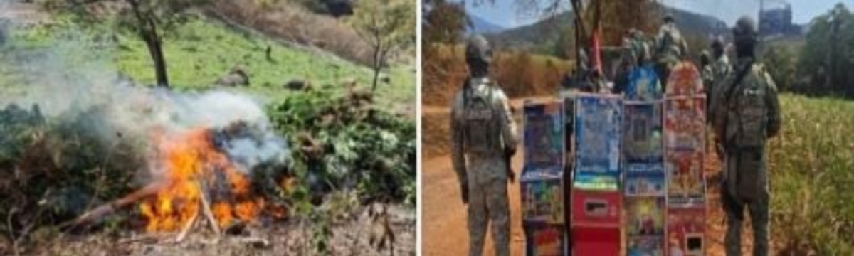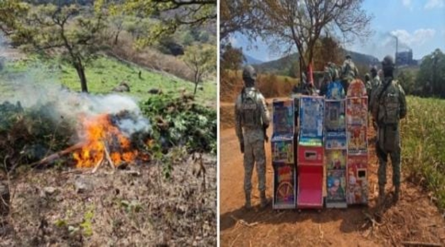 Tepic, Nayarit.- Un total de 540 dosis de sustancias con características de cristal, teléfonos celulares, dinero en efectivo, un vehículo, además de 12 plantíos de enervantes en La Yesca con una superficie aproximada de más de 50...